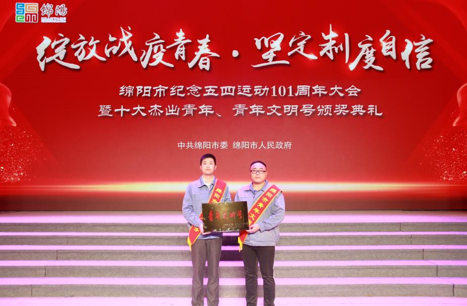 4月28日上午,“綻放戰(zhàn)疫青春·堅(jiān)定制度自信”綿陽(yáng)市紀(jì)念五四運(yùn)動(dòng)101周年大會(huì)暨十大杰出青年、青年文明號(hào)頒獎(jiǎng)典禮在綿州劇院舉行。綿陽(yáng)市委書(shū)記劉超,市政協(xié)主席李亞蓮,市委常委、宣傳部長(zhǎng)、秘書(shū)長(zhǎng)張學(xué)民,市人大常委會(huì)副主任李川萍,市政府副市長(zhǎng)蔣麗英,市政協(xié)副主席李京平等領(lǐng)導(dǎo)出席頒獎(jiǎng)典禮。市政府副市長(zhǎng)蔣麗英為獲得綿陽(yáng)市“青年文明號(hào)”的團(tuán)體代表頒獎(jiǎng)。東材科技黨員先鋒志愿隊(duì)榮獲綿陽(yáng)市“青年文明號(hào)”榮譽(yù)稱(chēng)號(hào),黨員楊晨、唐建作為志愿隊(duì)代表參加了本次典禮。