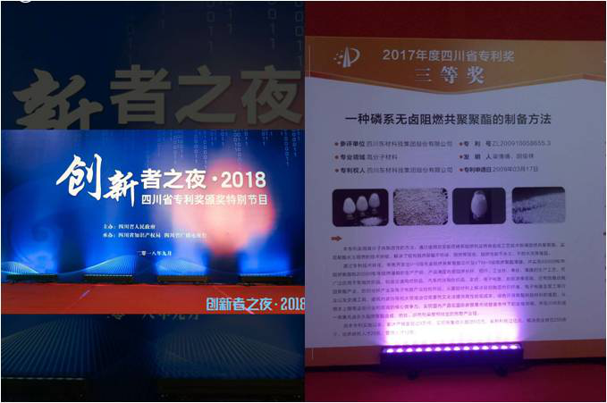 國(guó)家發(fā)明專利“一種磷系無(wú)鹵阻燃共聚聚酯的制備方法”獲四川省專利三等獎(jiǎng)